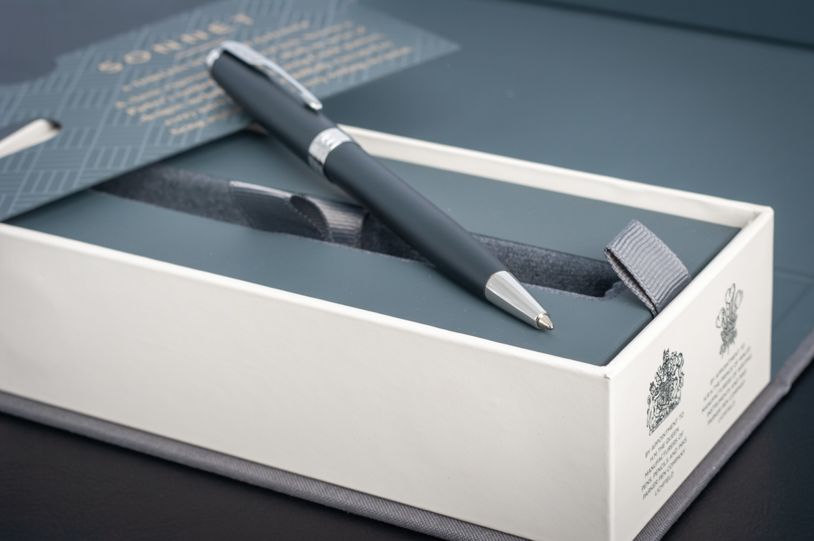 Шариковая ручка Parker Sonnet Matte Black CT от официального дилера Parker в Ставрополе. Вы можете дополнительно заказать гравировку, которая подчеркнет Вашу оригинальность и придаст памятность статусному подарку. Все ручки Паркер поставляются в фирменном футляре.